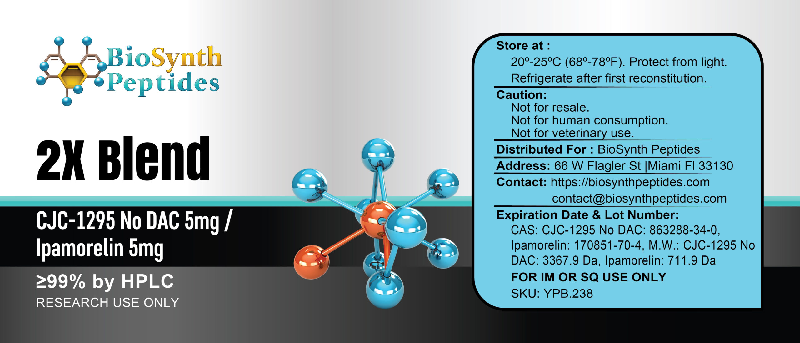 2X Blend CJC-1295 Without DAC (5mg) / Ipamorelin (5mg) combines two potent peptides—CJC-1295 Without DAC and Ipamorelin—to provide a powerful research tool for studying growth hormone (GH) secretion, anti-aging, and metabolic health. This 99% pure peptide blend is specifically formulated for scientific research into hormonal regulation, muscle growth, fat loss, and aging processes.