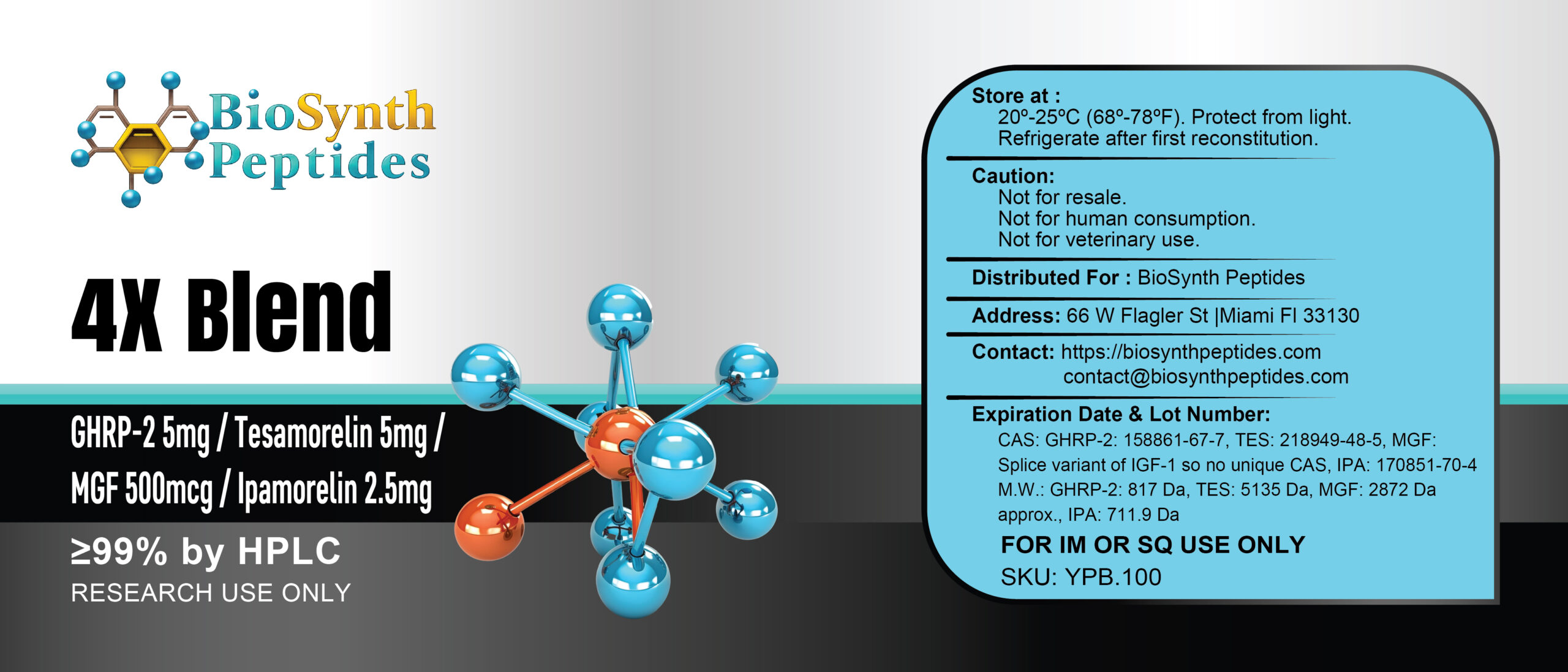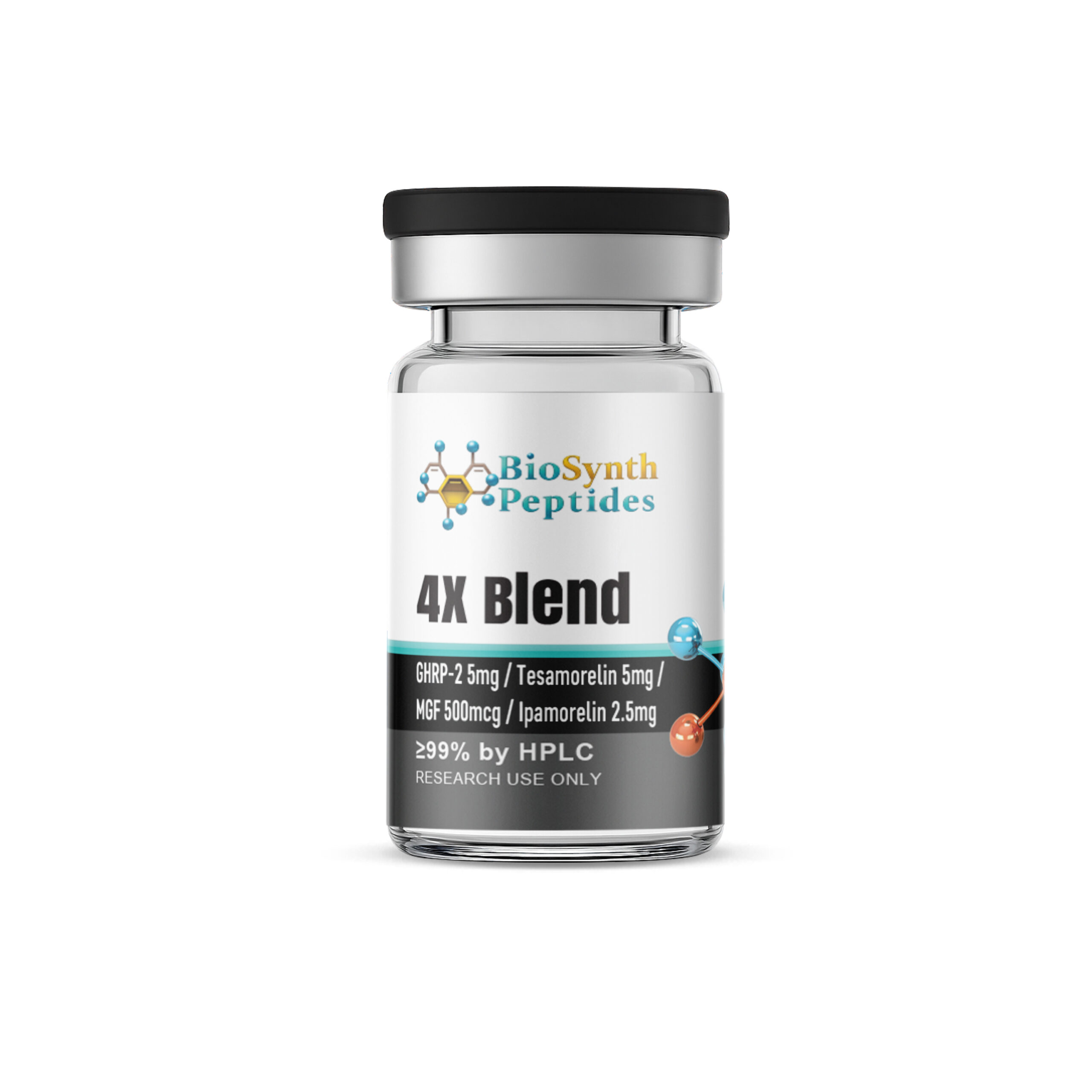 - Growth Hormone Stimulation and Regulation: This 4X Blend is used in studies to enhance growth hormone secretion, regulate GH levels, and optimize growth hormone therapies for endocrine disorders and anti-aging treatments.