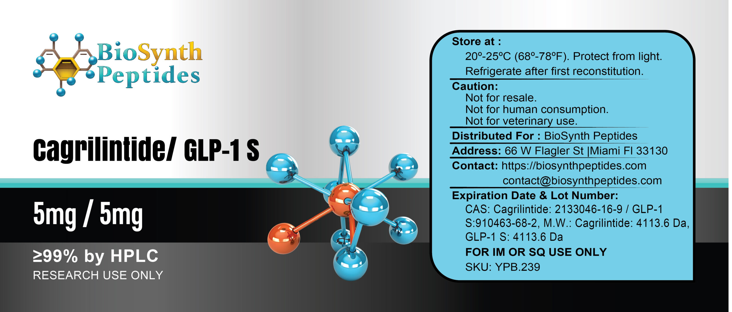 Cagrilintide has been developed for its ability to suppress appetite, enhance satiety, and regulate glucose metabolism, while GLP-1 S (an active form of glucagon-like peptide-1) plays a crucial role in glucose homeostasis and insulin secretion, making this peptide blend essential for diabetes, weight loss, and metabolic health research.