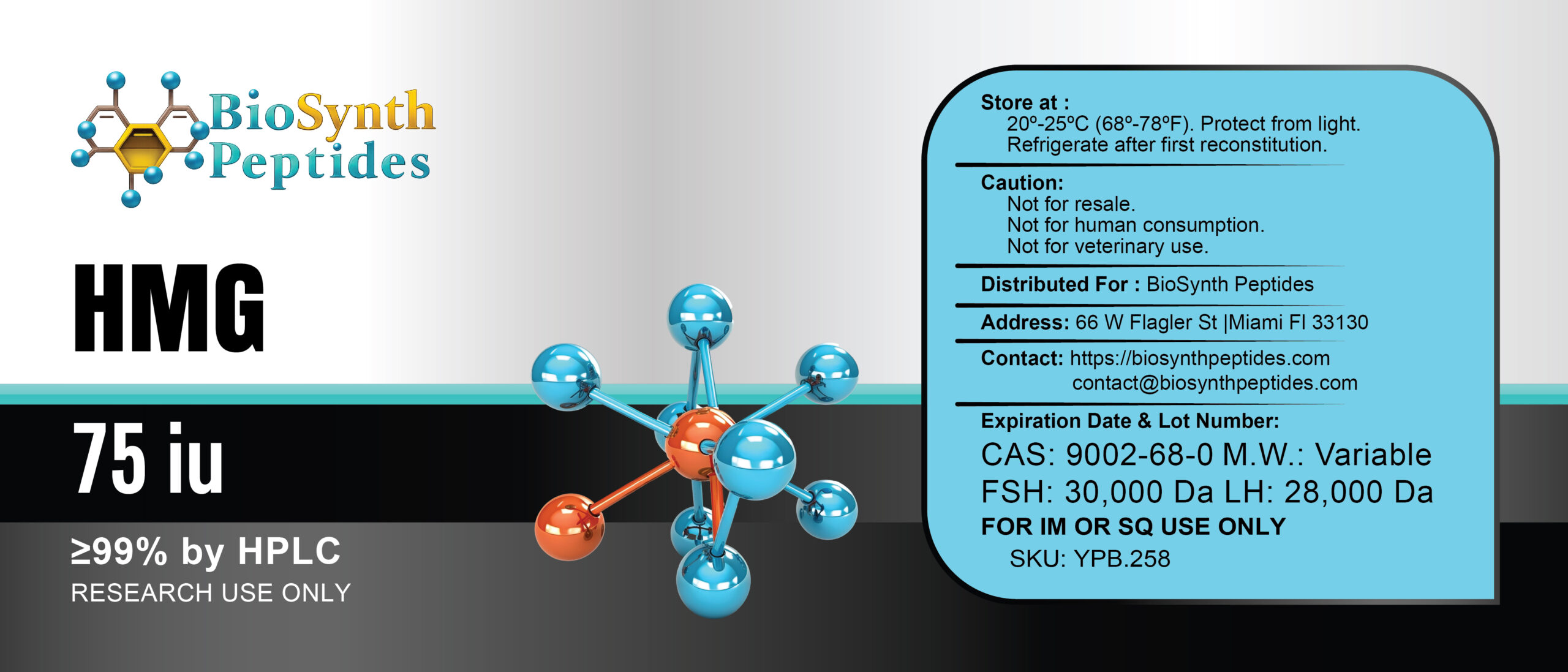 • 99% Purity: Manufactured with 99% purity, HMG (75iu) provides high-quality material for scientific investigations into fertility and gonadotropin-based therapies, ensuring reliable results in preclinical studies.