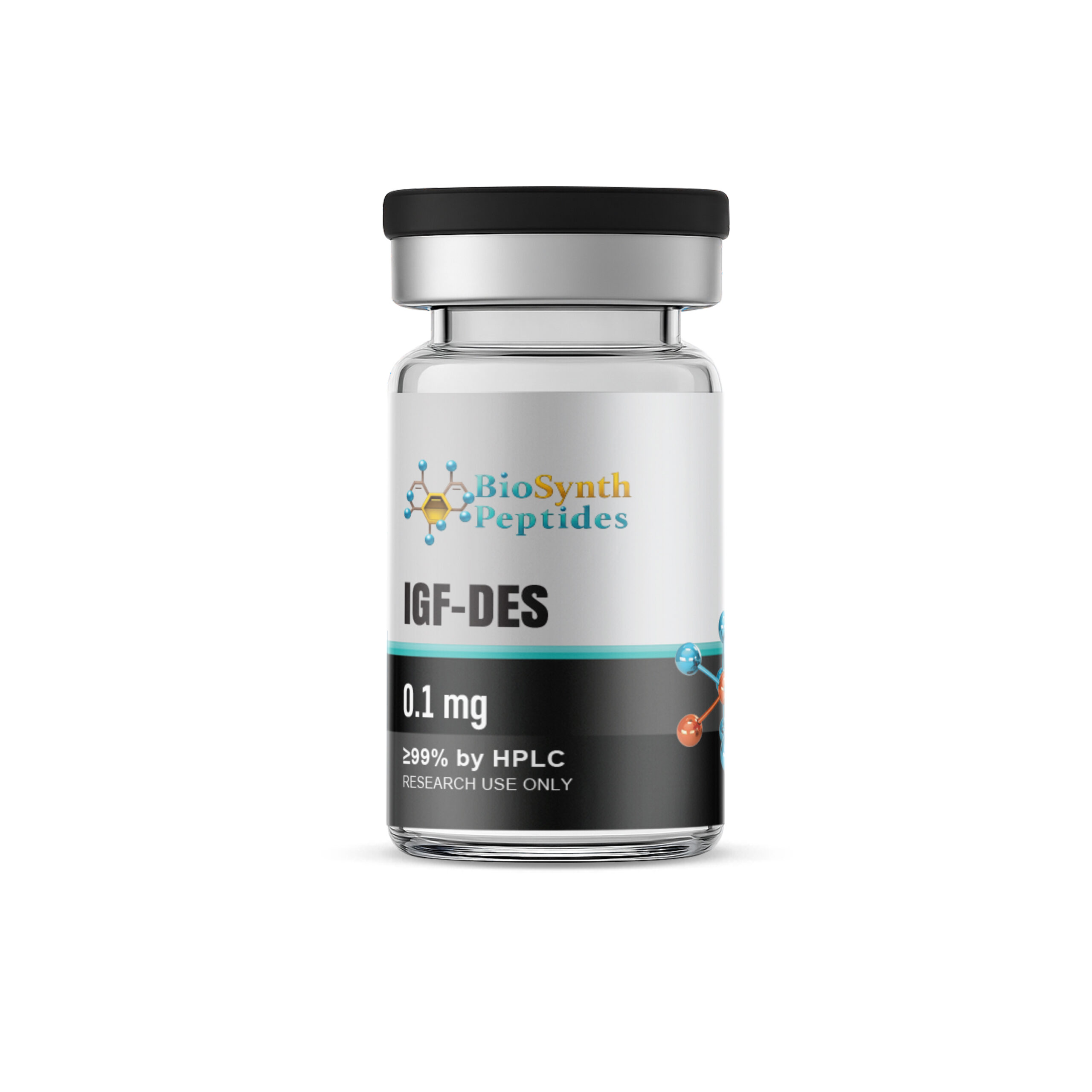 • IGF-DES (0.1mg) is a modified peptide of Insulin-Like Growth Factor 1 (IGF-1) that has a shortened sequence, allowing it to act more effectively on muscle cells, tissues, and growth hormone receptors.
