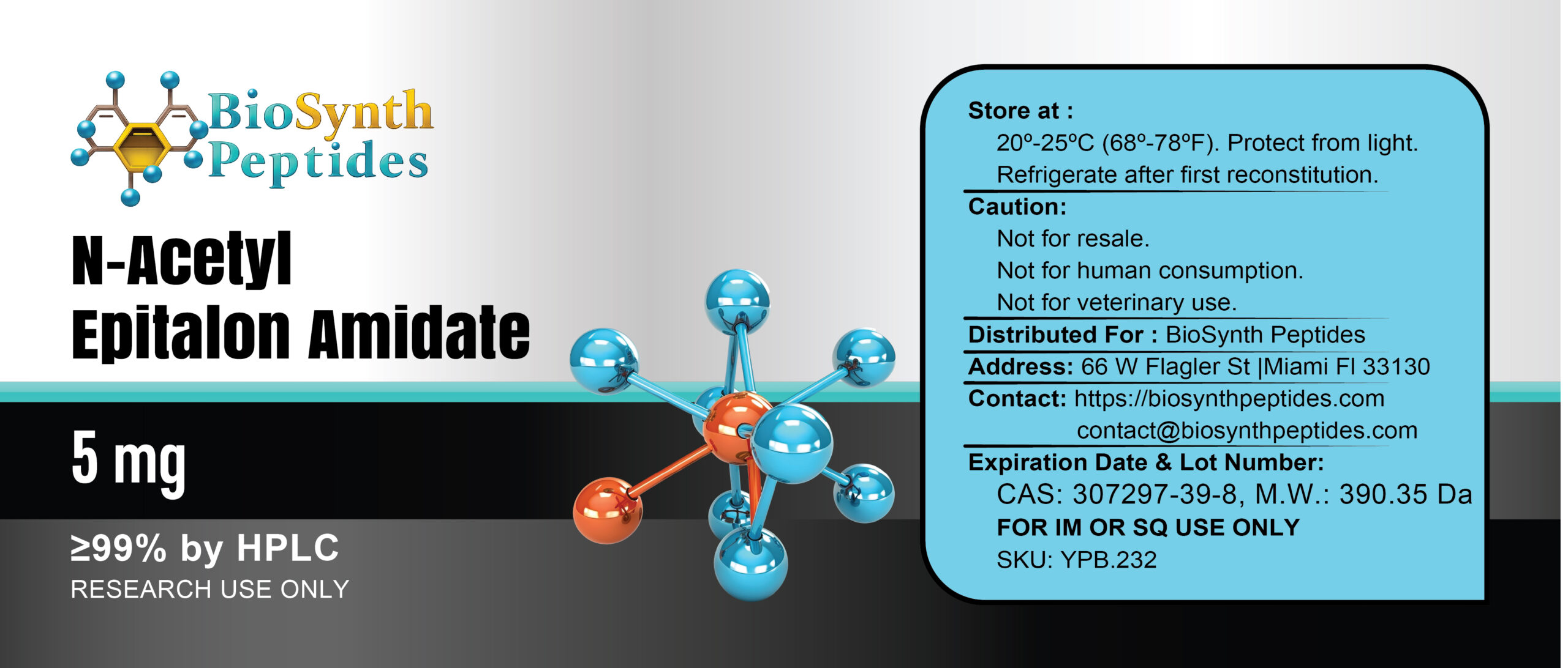 - 99% Purity: Manufactured to 99% purity, N-Acetyl Epitalon Amidate (5mg) is ideal for preclinical research, clinical studies, and longevity investigations with consistent and reliable results.